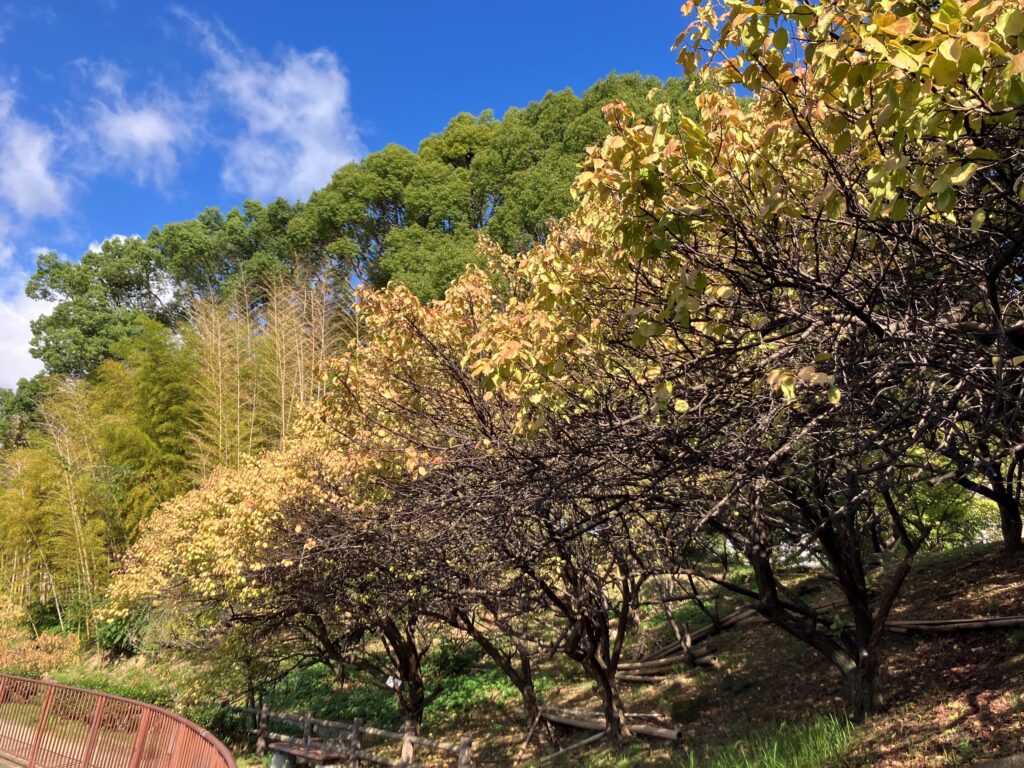 総括責任者の毎日 2025/10/27 変化する景色 桃山公園 2025-10-272025-10-27 桃山公園責任者の野田です。 本日は晴れた一日となりましたした。桃山公園内を周っていると、木々も色づき始めていました。公園へお越しの際は、木々の変化も観察しながら散策等してみてはいかがですか。