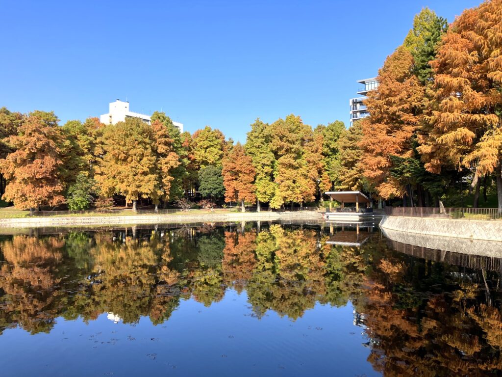 総括責任者の毎日 2025/11/17 水面に映る秋の景色 桃山公園 2025-11-172025-11-17 桃山公園責任者の野田です。 本日も晴れた一日となりました。公園内を周っていると、春日大池の水面に綺麗にラクウショウの木々が映っていました。公園へお越しの際は、景色等の写真に撮ってみてはいかがですか。