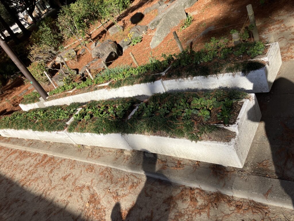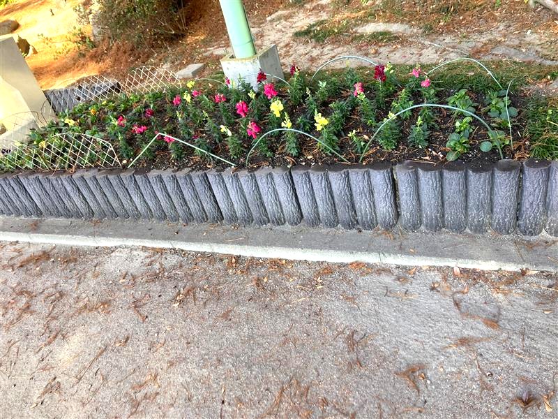 2025/12/13 東屋近くの花壇の花の植替えが行われました。