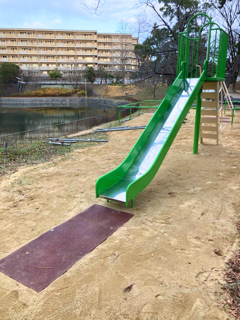 幼児向けのすべり台とブランコの設置につきまして、下記の通り設置工事が完了いたしました。