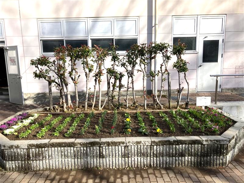 2025/12/23 駐輪場前、パークセンター前花壇の花の植替えが行われました。