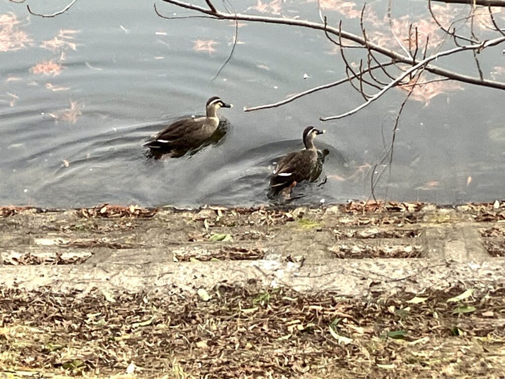 総括責任者の毎日 2026/1/15 カルガモが飛来していました。 2026-01-15 桃山公園 桃山公園責任者の野田です。 本日は雲が広がる天候となりました。公園を周っていると、春日大池の水面をカルガモが泳いでいました。公園へお越しの際は、様々な野鳥を観察しながら桃山公園をお楽しみください。