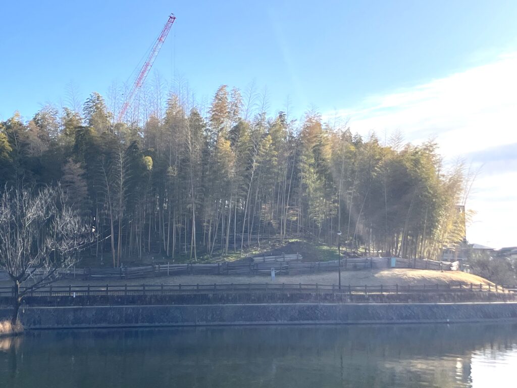 竹林を対岸側(西側休憩所付近)から見てみると、マルチングを行う箇所にはあまり竹がない状態となっています。今後、日程を決め新しい竹が生育できるようにマルチングを実施したいと思います。