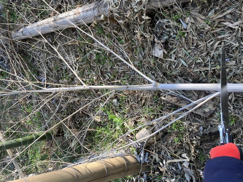 本日は、以前伐採した竹の処理(枝払い等)を行いながら、竹林内西側エリアのマルチング再実施場所の確認を実施しました。あまり変化わないのですが、周りに少しずつ雑草が伸びてきていました。今後としては、近くにある枯竹等も伐採しながら、マルチングに備えようと思います。