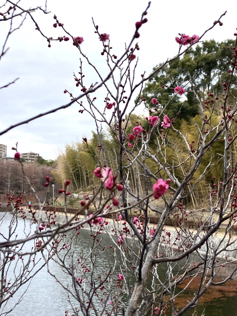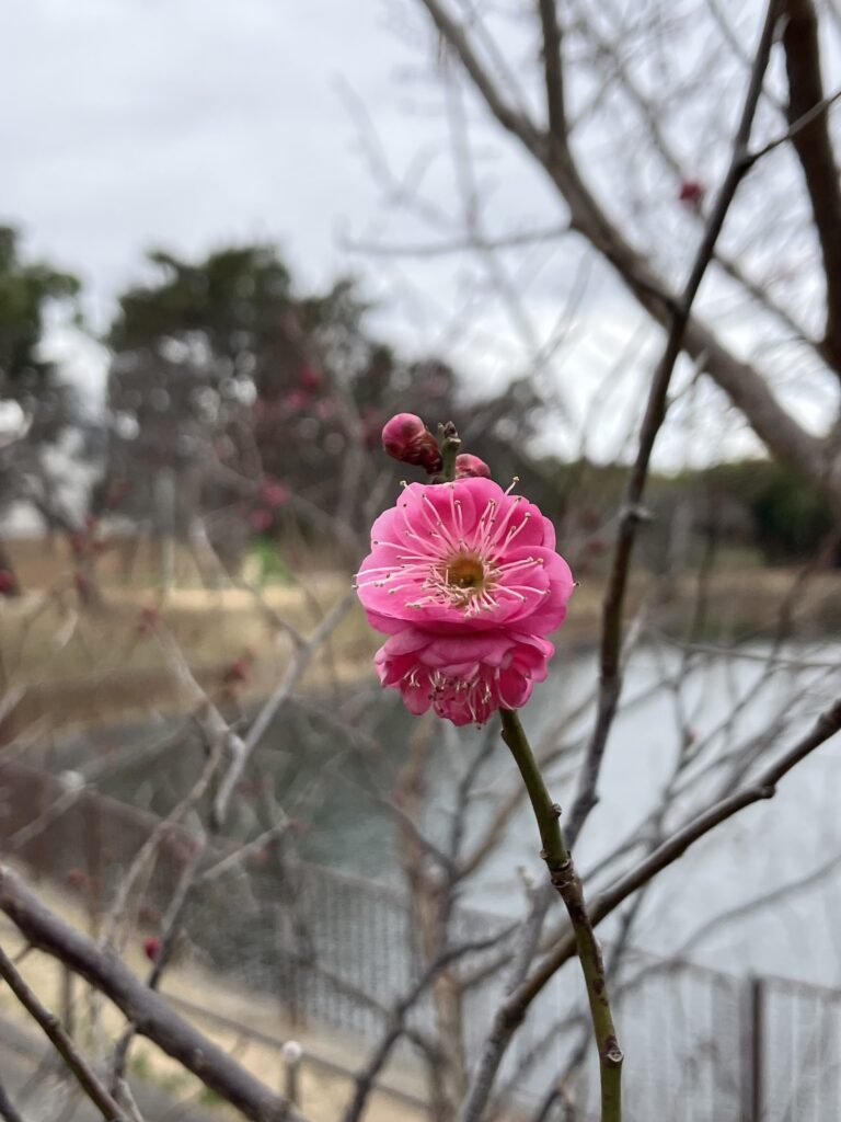 公園内には白梅の他に紅梅の木もあり、鮮やかなピンク色の花開かせていました。まだまだ蕾が多い状態です。これから気温も暖かくなってくるので、梅の花が全体的に咲くの日が楽しみです。公園へお越しの際は、植物の変化を観察してみてはいかがですか。