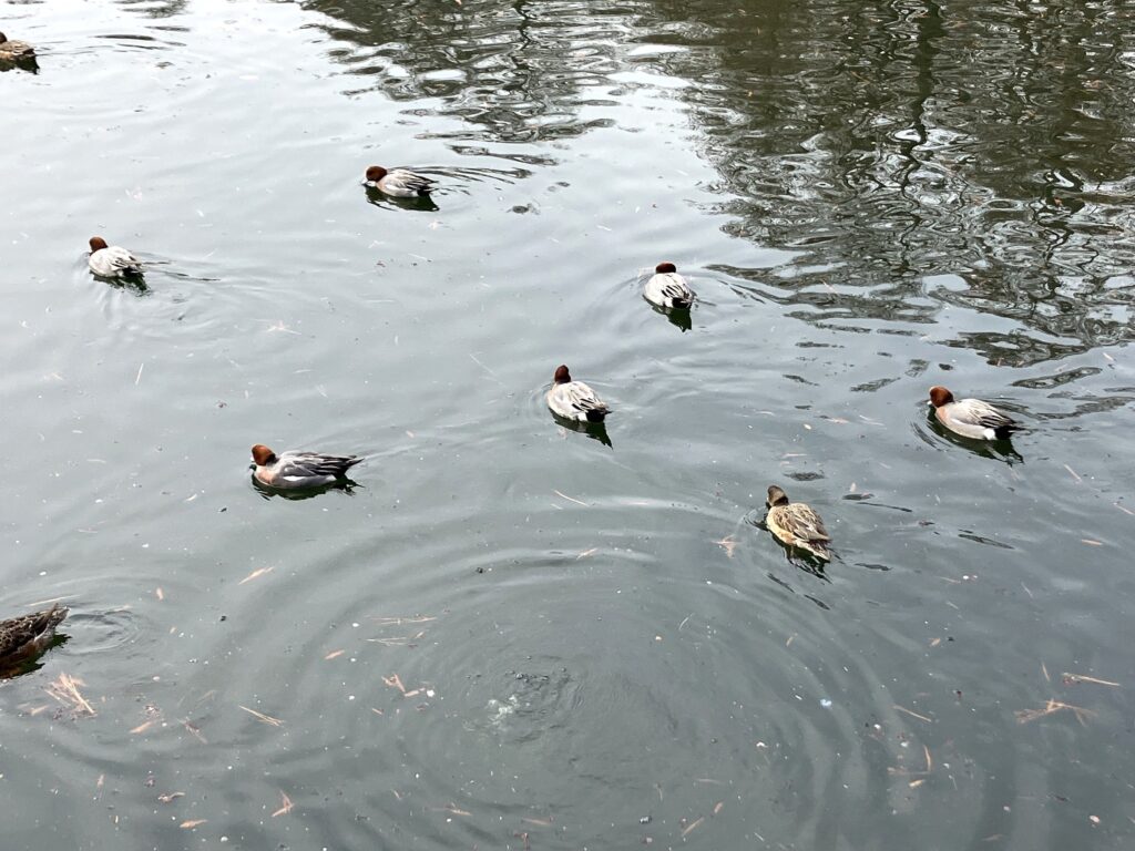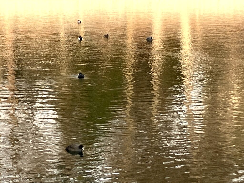 本日、朝は曇り空でしたが、日中は晴れた一日となりました。公園を周っていると、ヒドリガモやオオバン、キンクロハジロ等野鳥たちが春日大池の水面を気持ちよさそうに泳いでいます。公園へお越しの際は、野鳥観察しながら桃山公園を周ってみてはいかがですか。