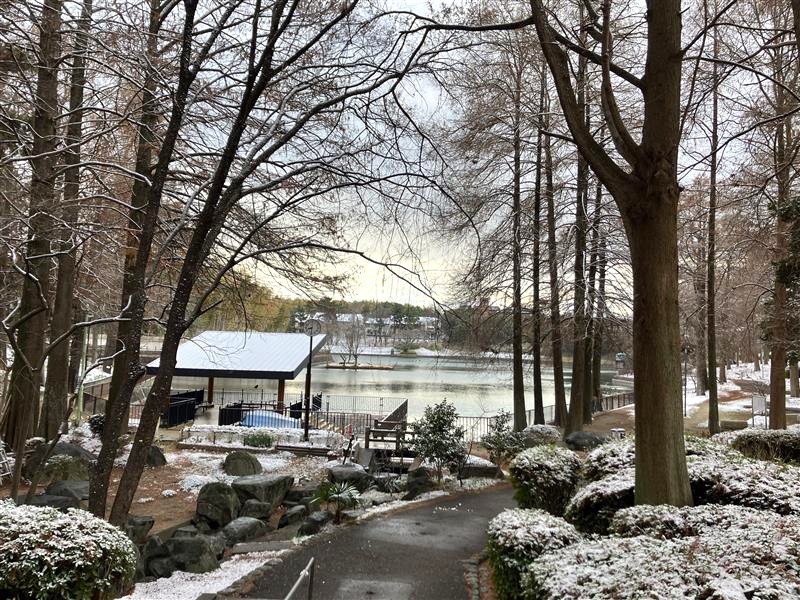 総括責任者の毎日 2026/2/8 桃山公園内雪化粧 2026-02-08 桃山公園 桃山公園責任者の野田です。 朝から雪が降り、公園全体に雪が薄っすらと積り、まるで雪化粧したかのような綺麗な景色となっていました。公園をお越しの際は、暖かい恰好等寒さ対策をしっかりして公園をご利用ください。