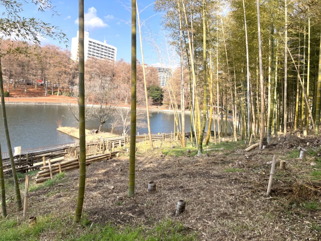 本日は、竹林内西側エリアのマルチング再実施場所の確認を実施、マルチング箇所の近くの枯竹の伐採及び処理(枝払い等)作業も実施しました。今後も確認しつつ、枯竹などの伐採等も行い、マルチングを実施していきたいと思います。