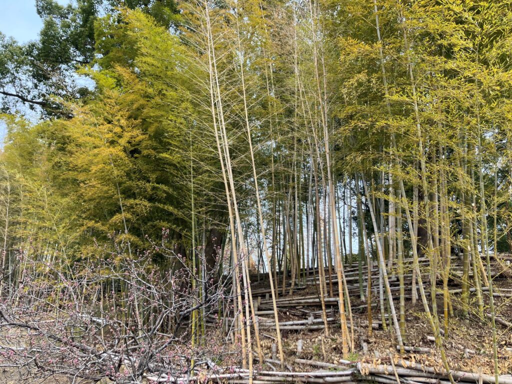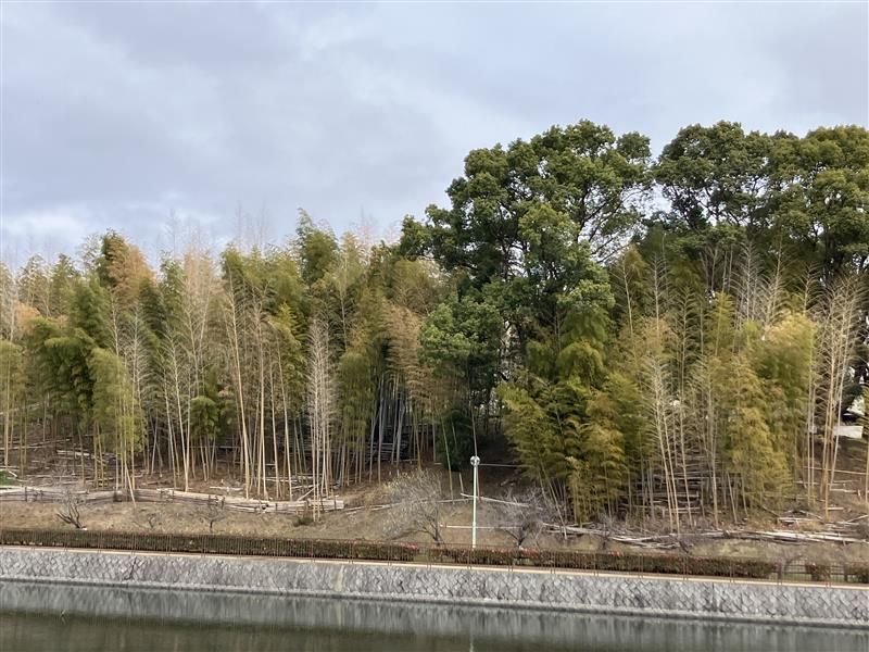 本日は竹林を南東側(ハナモモ付近)より確認し、前回同様、枯竹が多く竹柵の付近にも枯竹が密集しています。対岸南側から確認しても、枯竹が目立っている印象です。今後、新竹が生育できるように、歩行者に注意にし、伐採等作業できればと思います。