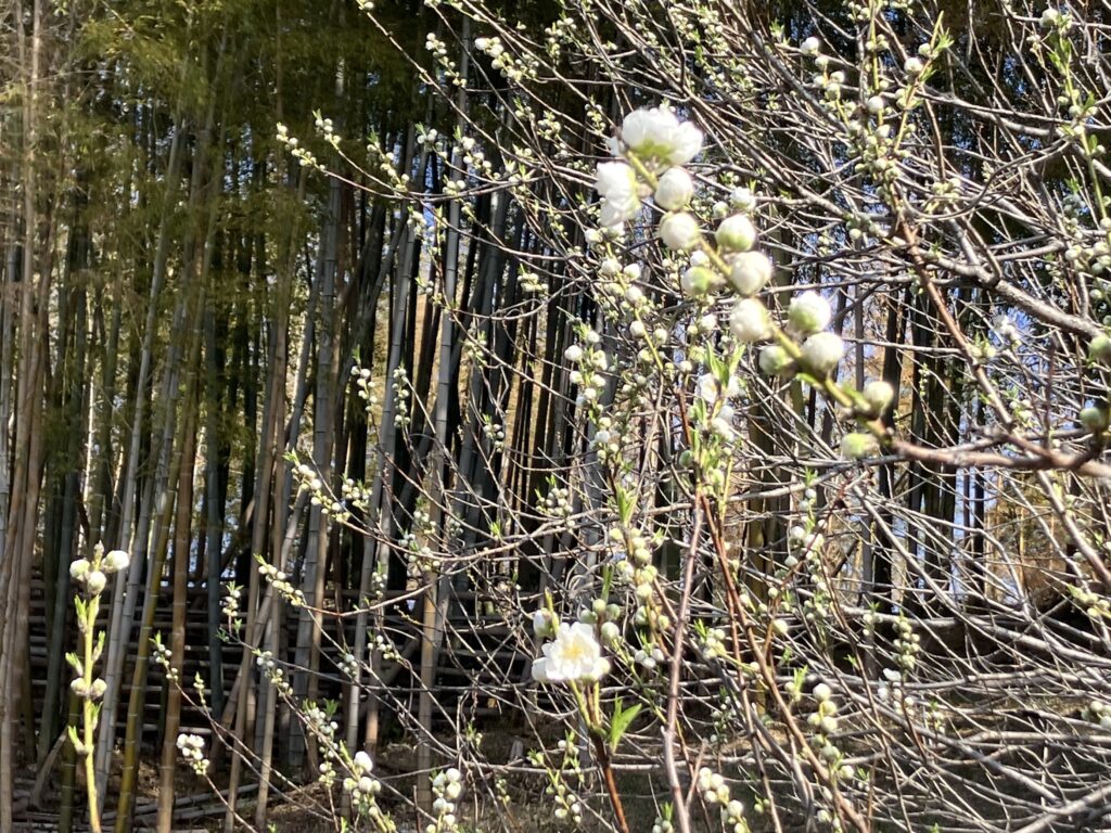 3月に入りました。本日は天気も晴れ過ごしやすい気温になったのではと感じます。桃山公園では以前紹介したハナモモが白色のハナモモは少しずつ花弁が開き始め、ピンク色のハナモモは花芽が大きくなっており、こちらも花ひらき始めようとしています。桃山公園には様々な植物がありますので、公園へお越しの際は、植物観賞をしてみてはいかがですか。