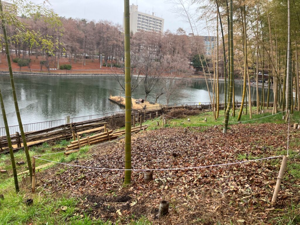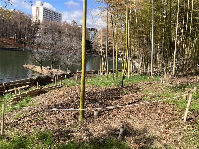 竹林の観察日記 2026/3/4 竹林観察日記㊸ 2026-03-04 桃山公園 桃山公園責任者の野田です。 本日は再マルチングを実施した西側を確認しました。少しずつ雑草は伸びてきていますが、マルチング箇所はまだ変化は感じません。今後も確認をしていきます。 【2月25日】 【3月4日】