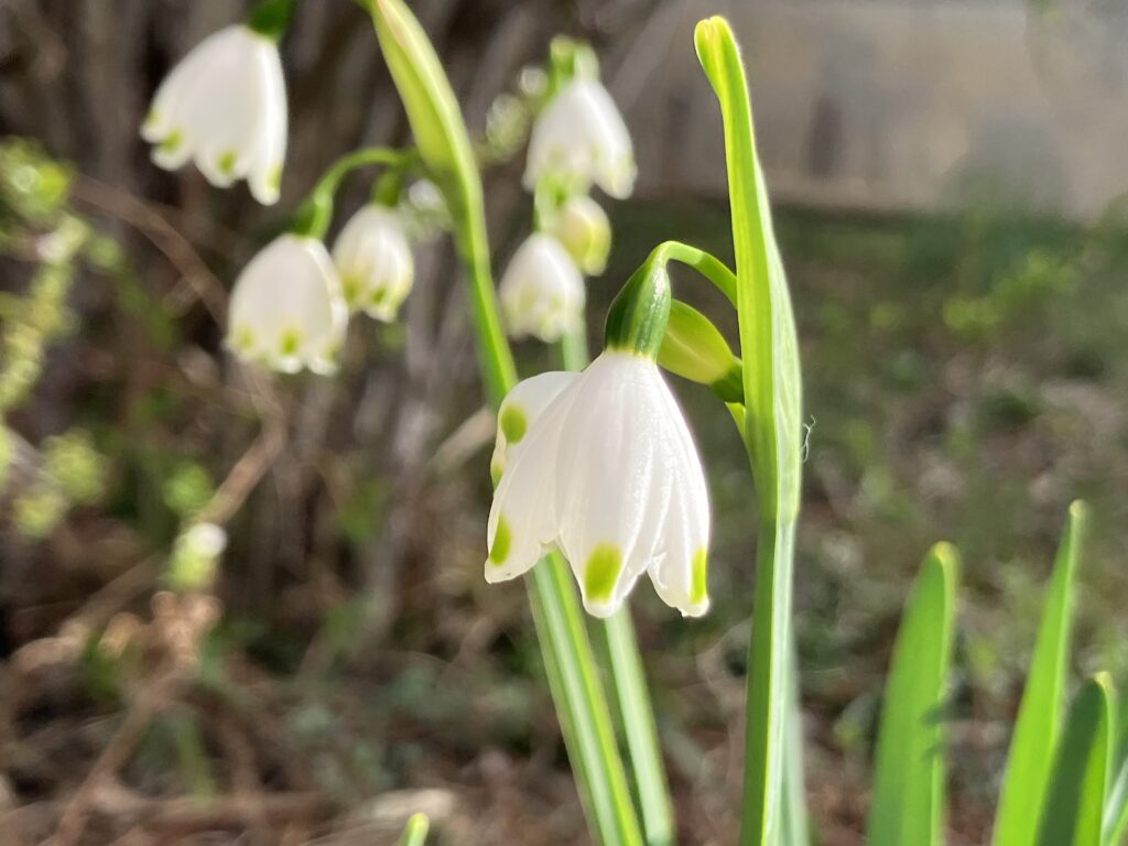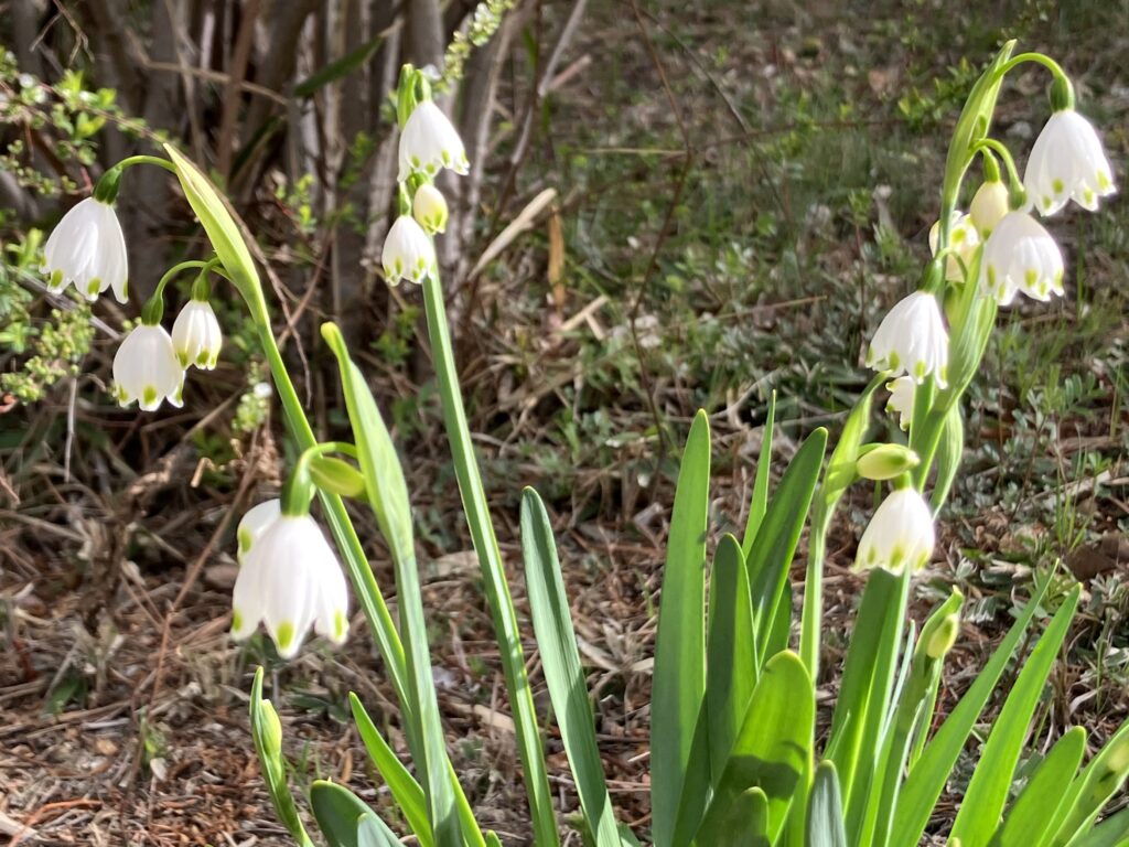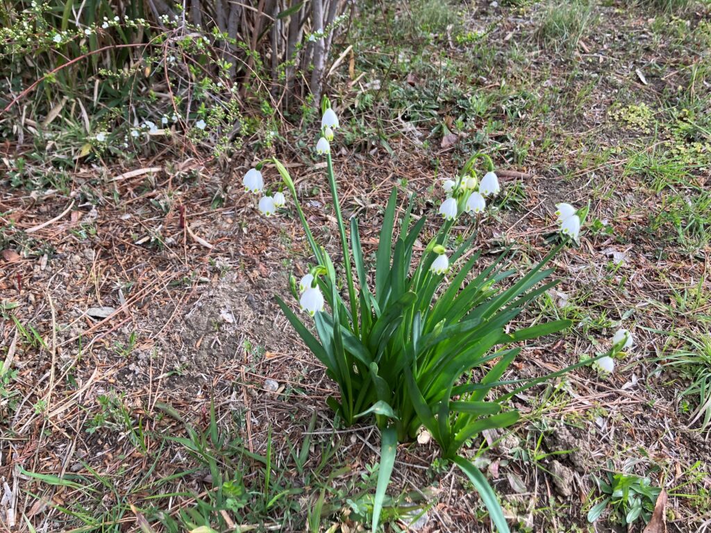 桃山公園の東側にあるユキヤナギの下にスノーフレークという白い花が咲いていました。